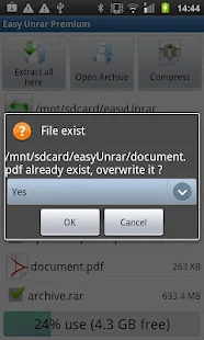 Easy Unrar, Unzip & Zip تطبيق مجانى للاندرويد والهواتف الذكية يسمح لك بفك ضغط الملفات وضغطها وحفظها الى الارشيف بصيغة RAR بسهولة التطبيق يدعم جميع إصدارات الملفات بصيغة RAR والملفات المحمية بواسطة كلمة مرور والملفات المضغوطة متعددة الاجزاء البرنامج يمكنك بسهولة من فك الضغط وتصفح الملفات المضغوطة من الأرشيف دون فك الضغط بالكامل فقط تستطسع اختيار الملفات التى ترغب بتصفحها ثم إستخراج،مع امكانية تشغيلها مباشرة في التطبيق دون استخدام متصفح آخر.